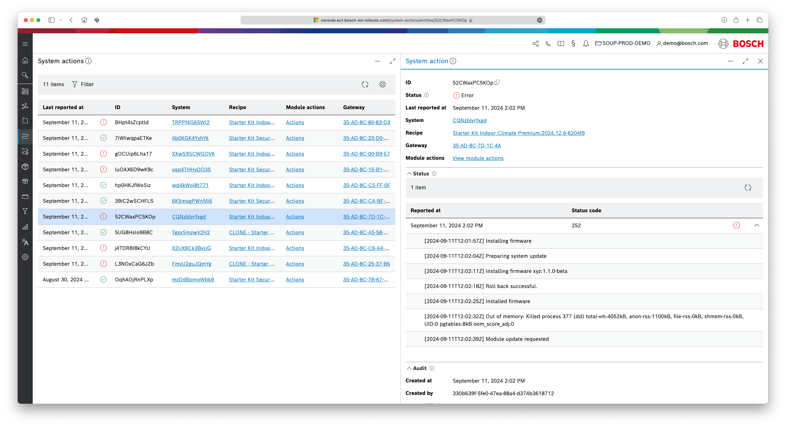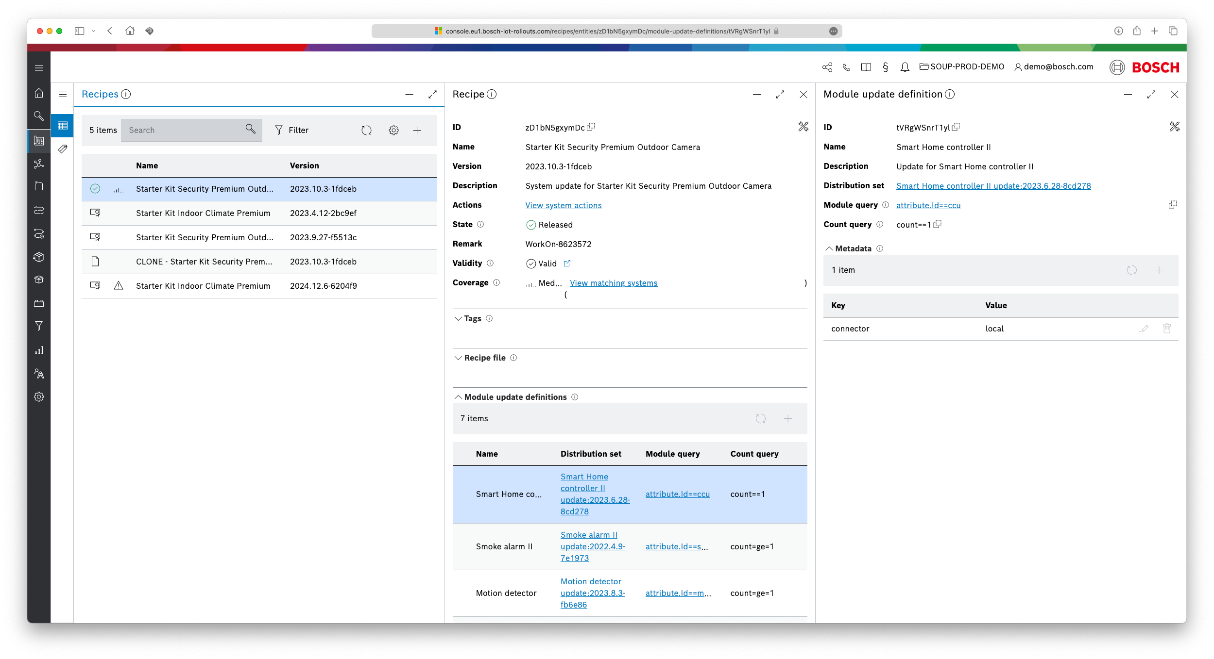 We are thrilled to introduce the initial release of System Software Update (SOUP), a new extension to Bosch IoT Rollouts. SOUP empowers you to roll out updates across multiple interconnected devices, ensuring compatibility by accounting for interdependencies among them. Imagine a smart home equipped with a variety of sensors and actuators, all communicating via the same protocol. When it's time to update this protocol, every device must be updated to maintain compatibility and functionality. With SOUP, Bosch IoT Rollouts can be extended with advanced capabilities to manage system-wide updates and identify compatible updates for specific systems. The initial version of SOUP includes the following features: