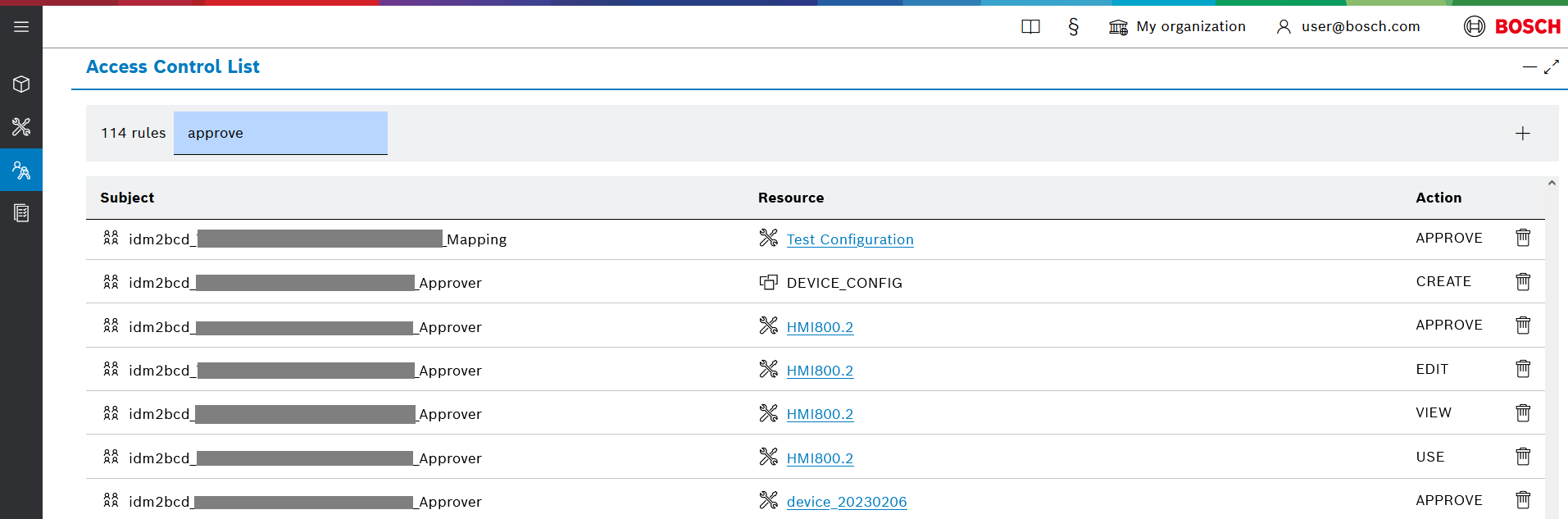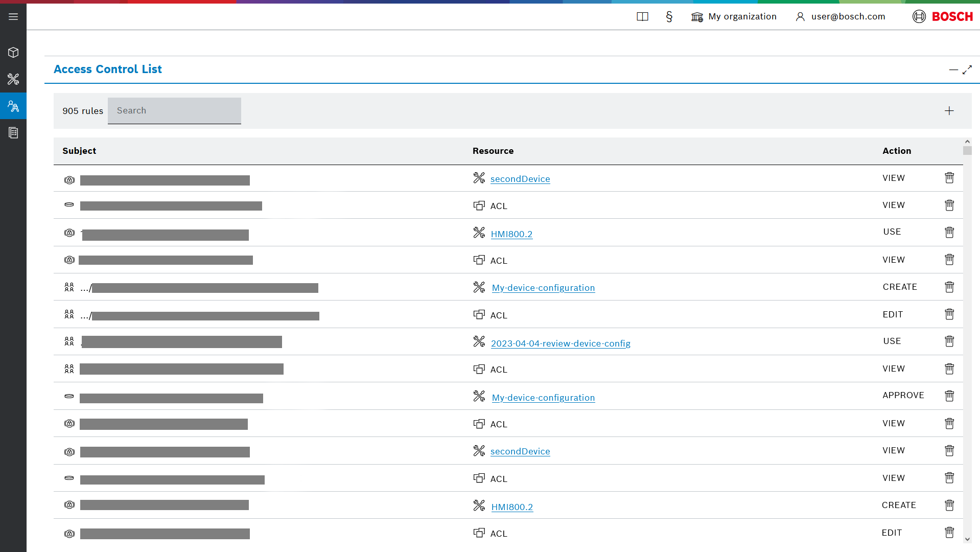 - Delete icon - you can delete an ACL entry with the delete icon.