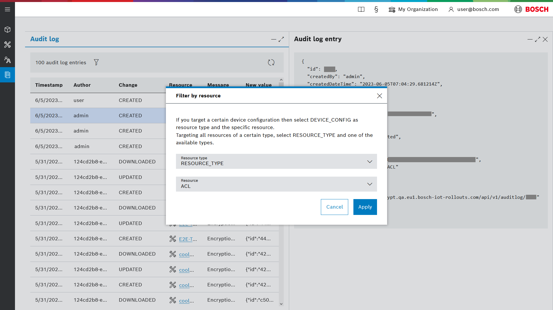 - Choose a Resource type. Can be either DEVICE_CONFIG or RESOURCE_TYPE .