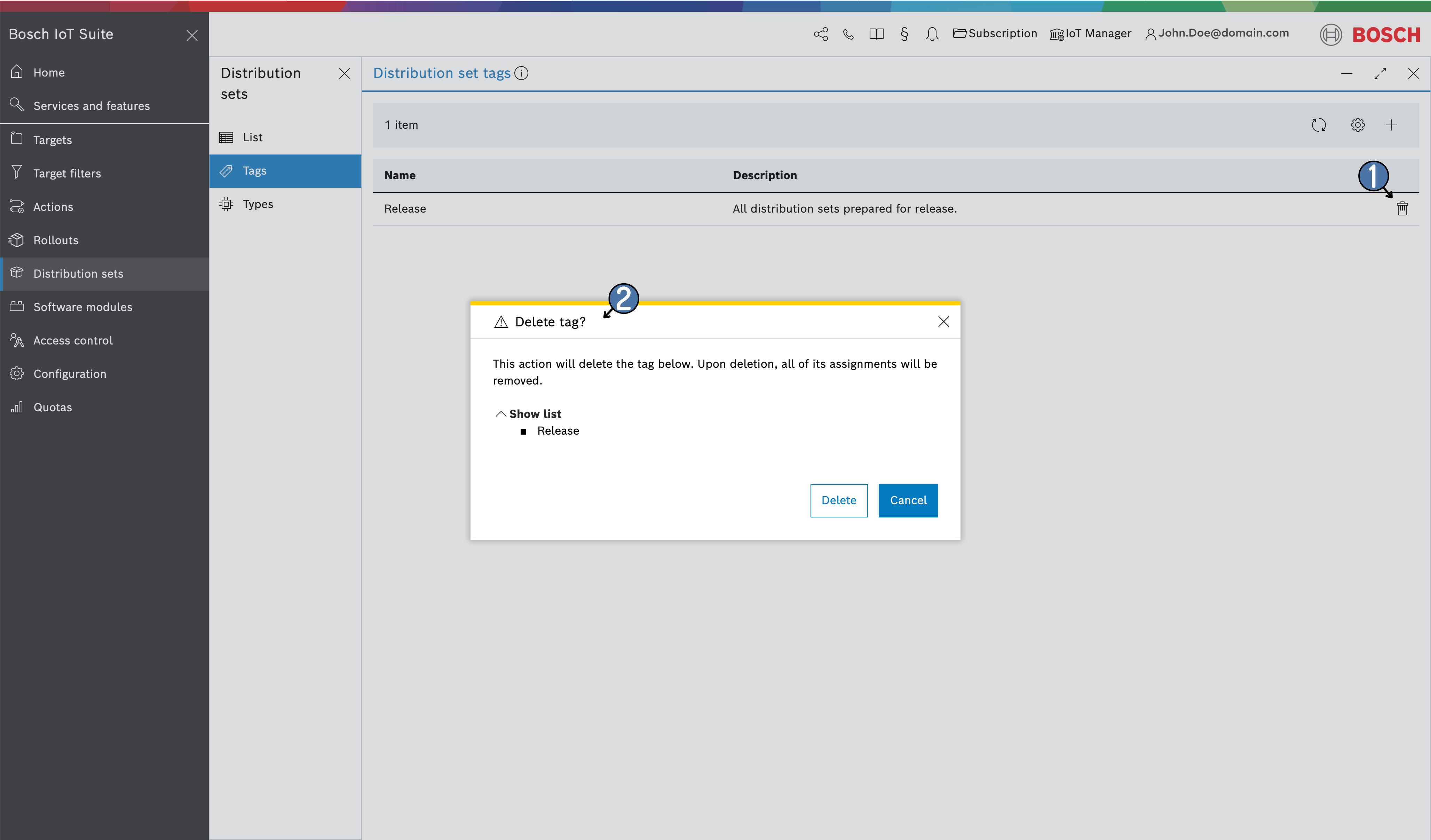 Deleting a tag will unassigns it automatically from all distribution sets it is assigned to.