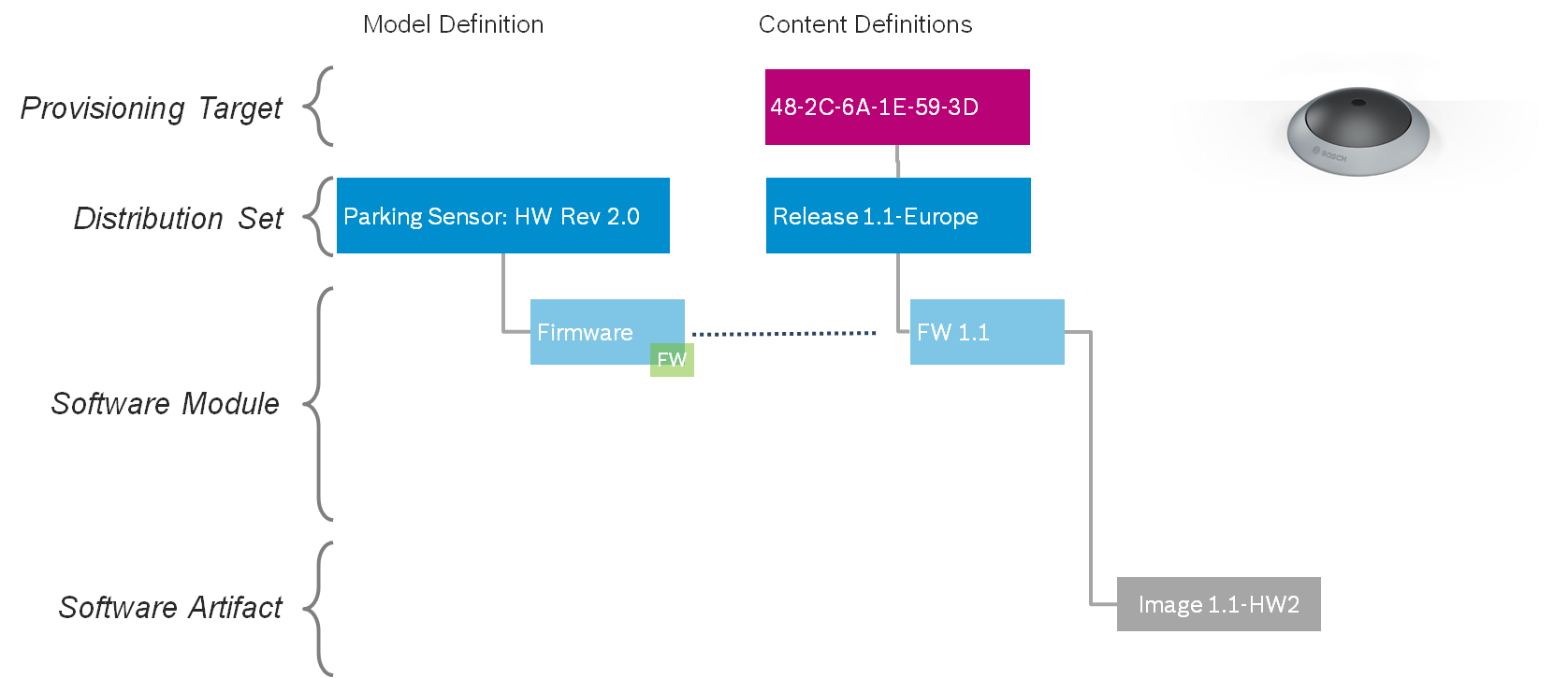 - Artifact: binaries for a software module. Note: the decision which artifacts have to be downloaded are done on the device side.