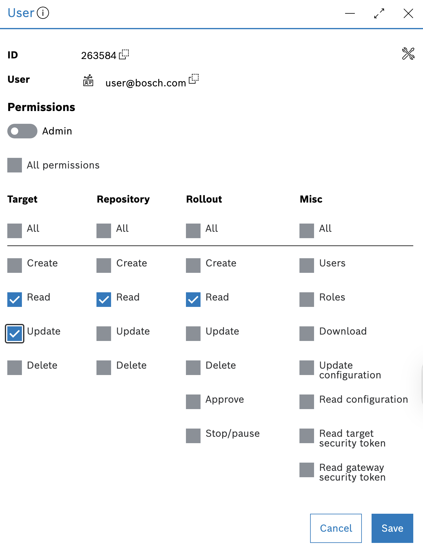 Updating a user is simple. Follow the steps below to modify the user’s permissions.