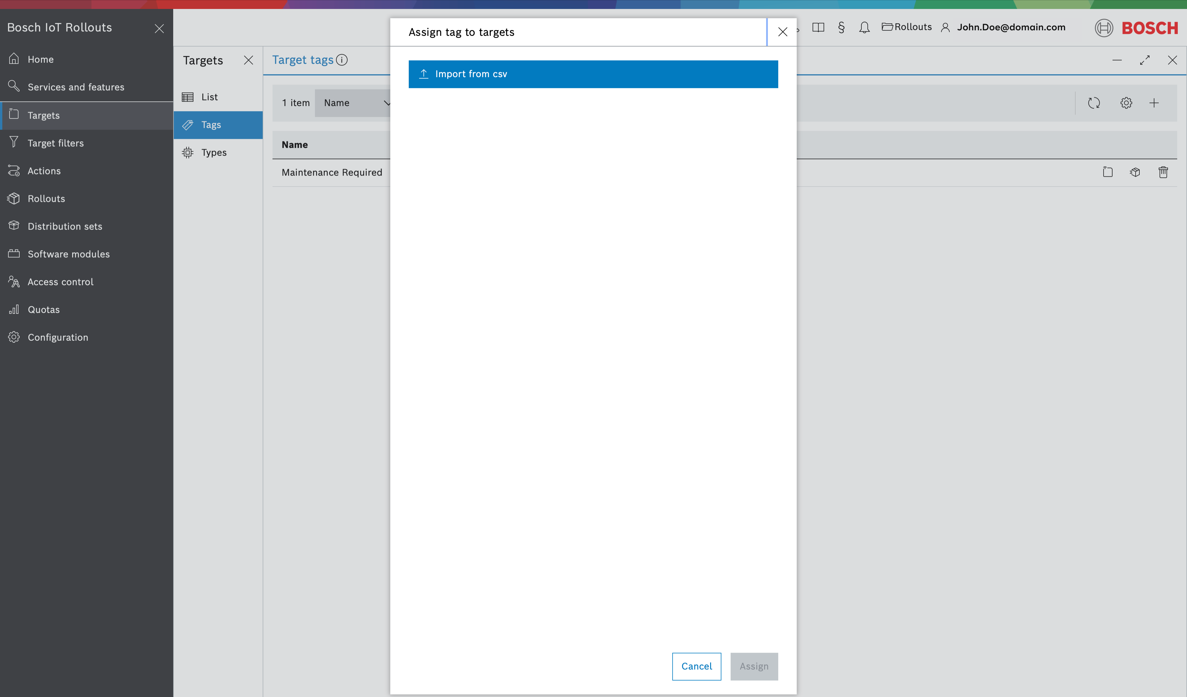 You have 3 actions for each tag: - Assign tag to targets - assign the tag to multiple targets by uploading a comma-separated values (CSV) file containing the Controller IDs of the targets.