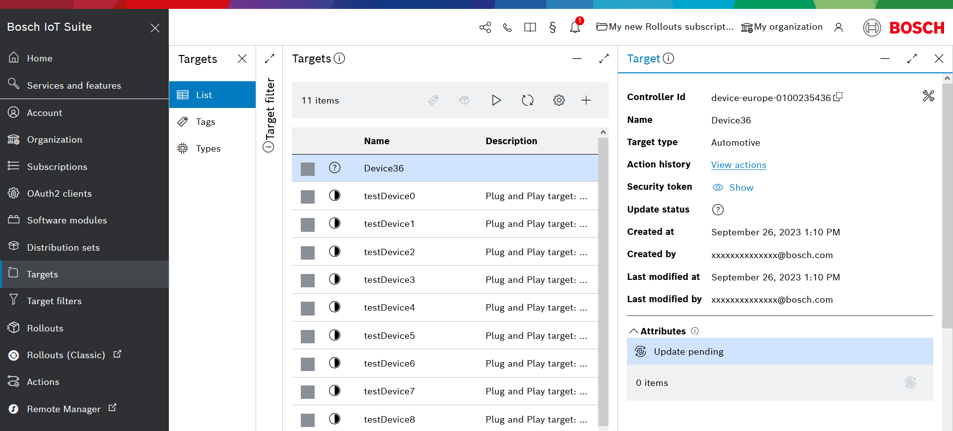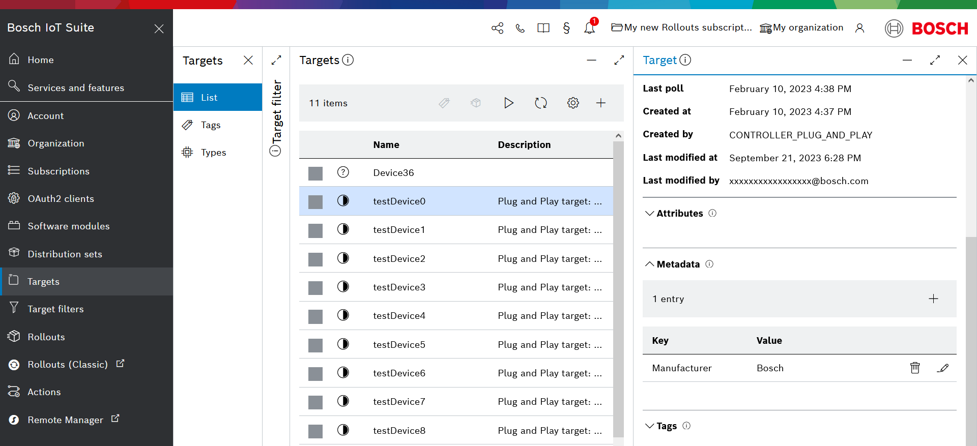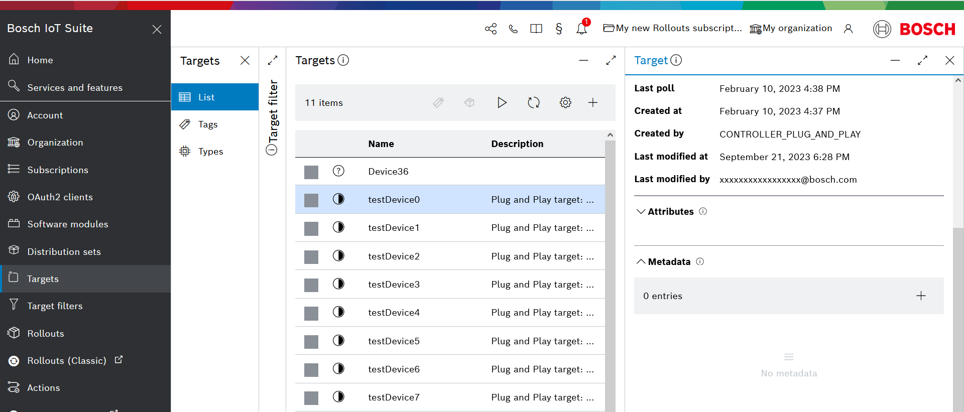 - Then click the first icon on top of the target list (icon tooltip saying Create rollout for selected targets).