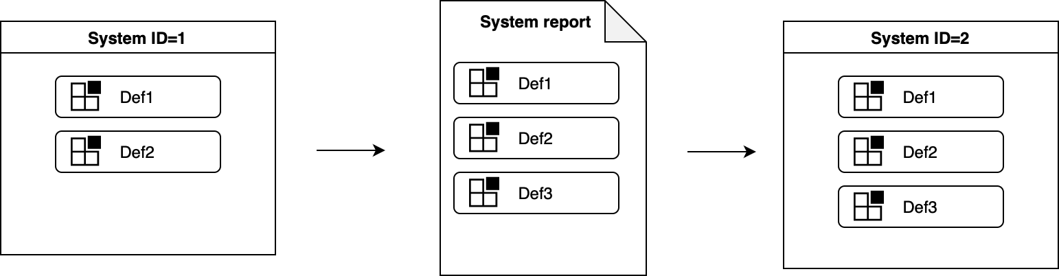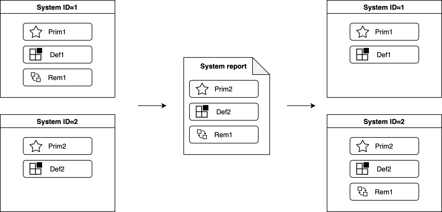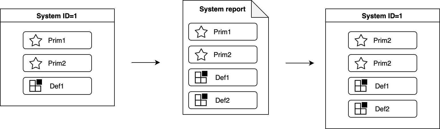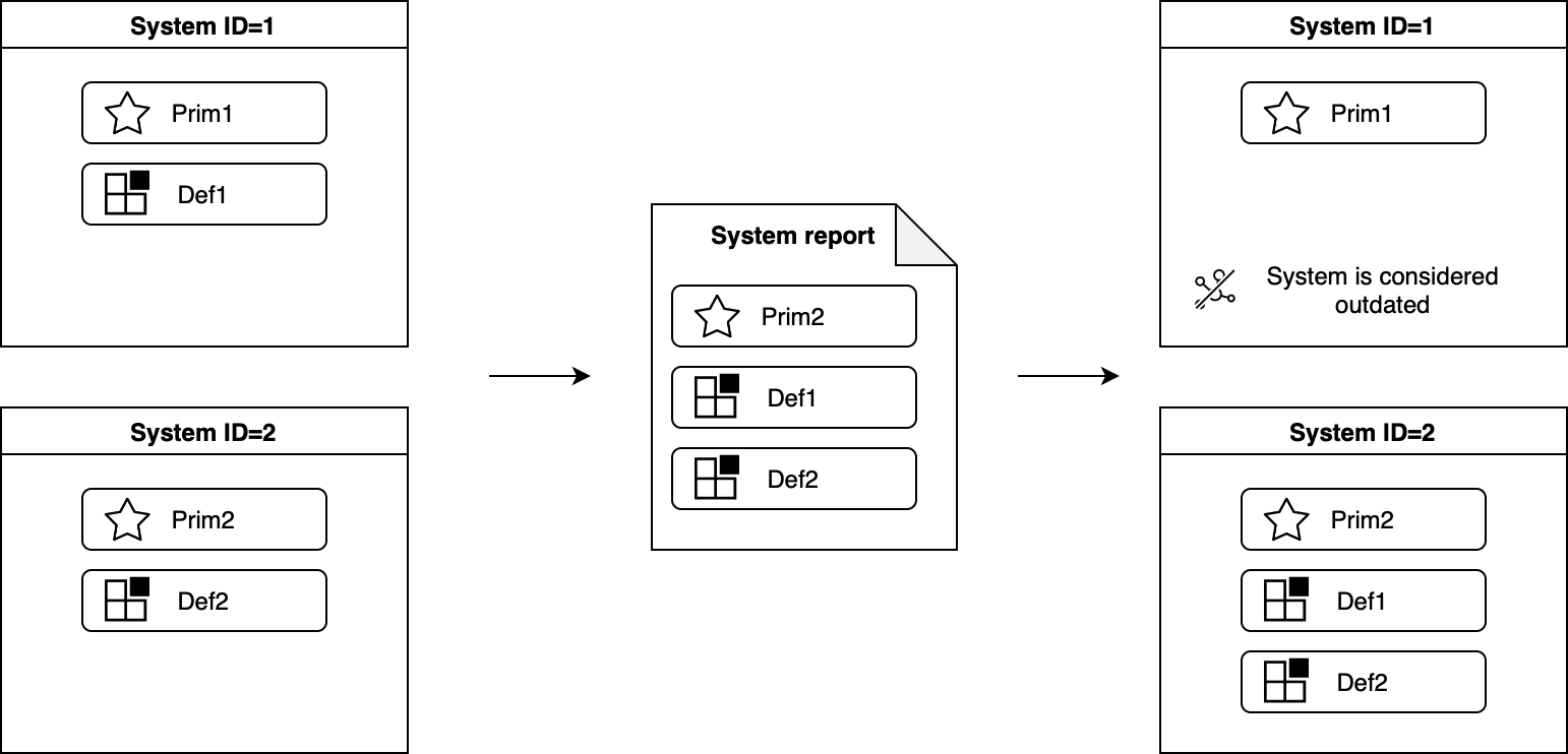 | Default | Also known as optional or standard modules, these modules represent additional system functions that can be removed or replaced. While default modules do not directly contribute to system identification, they are considered when tracking the evolution of a system. For instance, if a default module is removed from one system (i.e. a new system report does not include it, or it is included in the system report of another system), the system configuration that previously included the module is marked as outdated. |