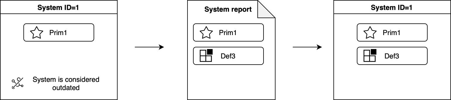 A default module is reported as part of another system report. This marks the previous system as outdated, as it obviously changed, without notifying the backend about its latest state.