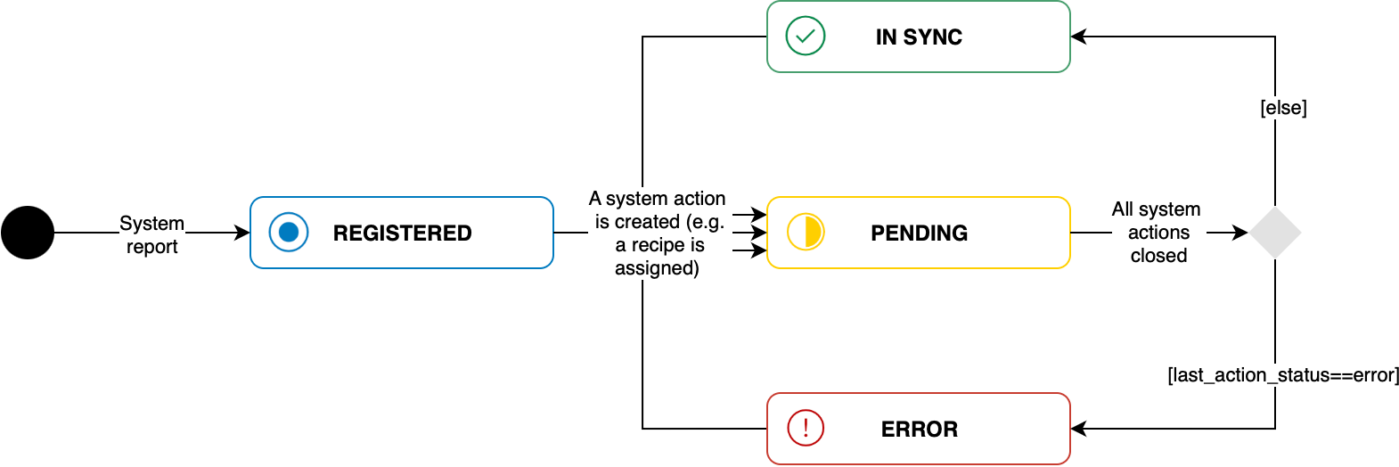 REGISTERED | The system is registered with the service but no recipe is assigned. | |