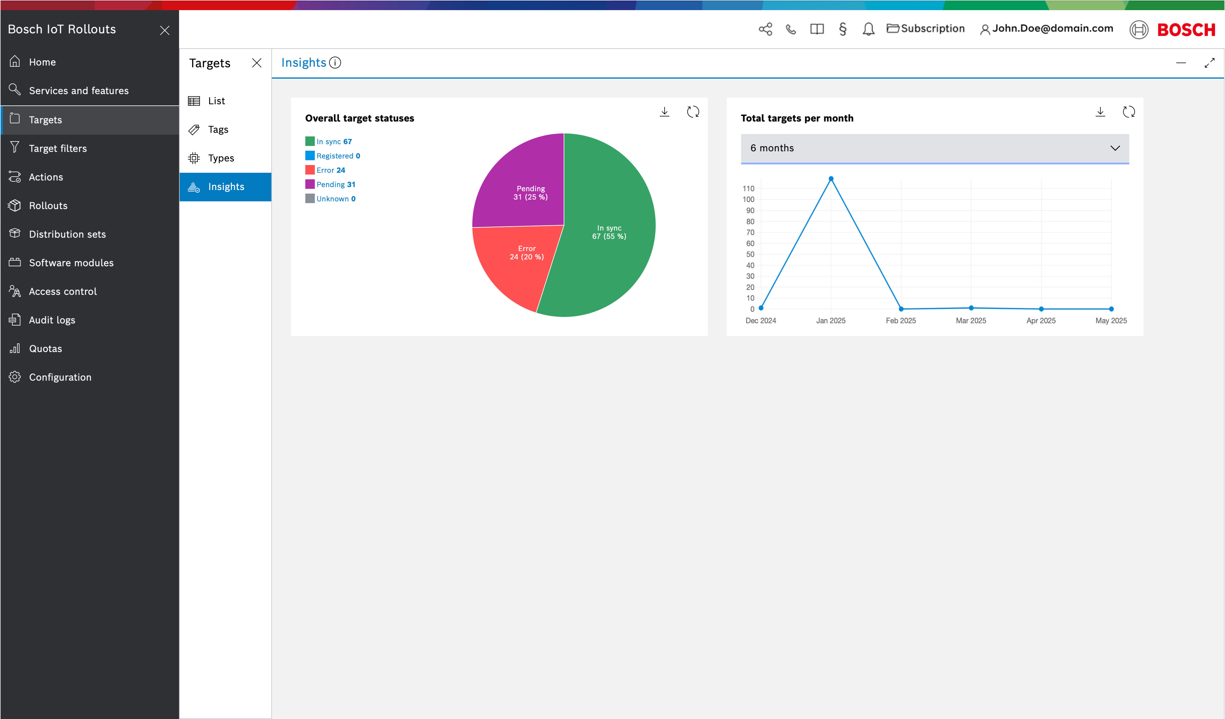 The Targets Insights page provides an at-a-glance overview of your rollout targets’ status and growth over time. You can use these insights to quickly understand the distribution of target statuses, spot onboarding trends, and drill into areas that may require attention.