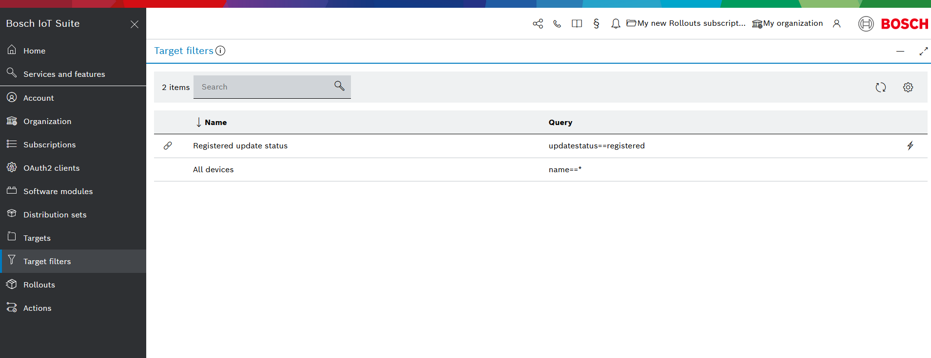 You can also search for target filters via the Search input field. It accepts queries by target filter name only.