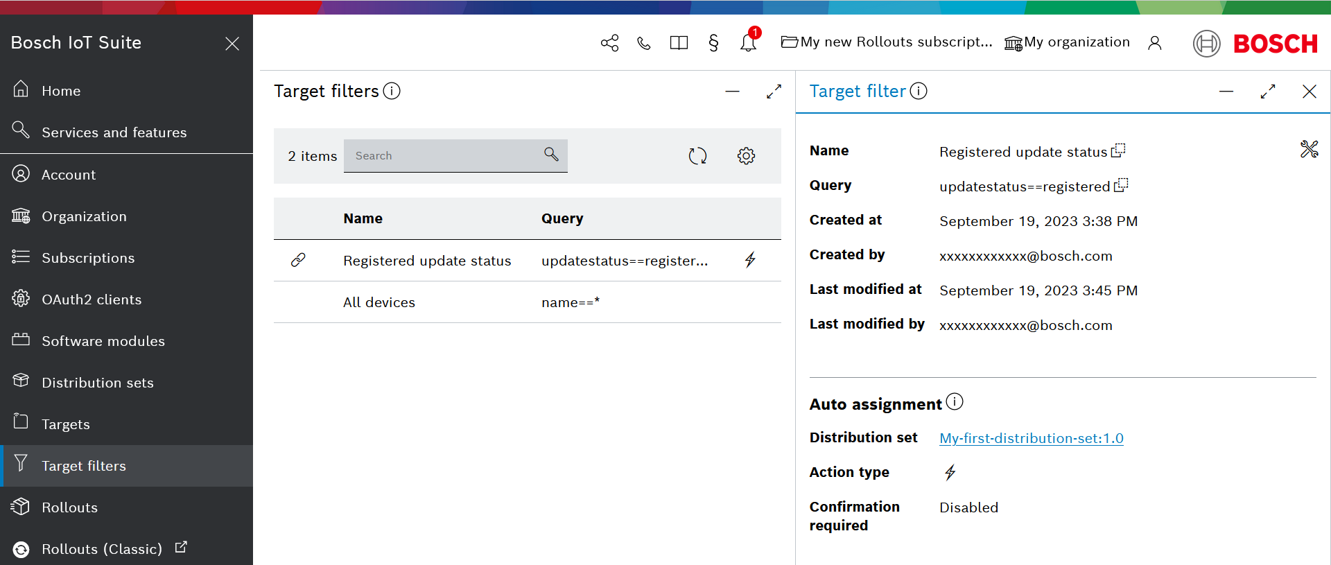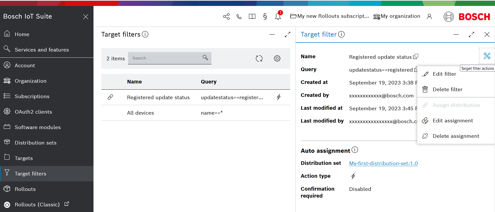 - Auto-assignment - an icon column showing whether the respective target filter is associated with an auto assignment