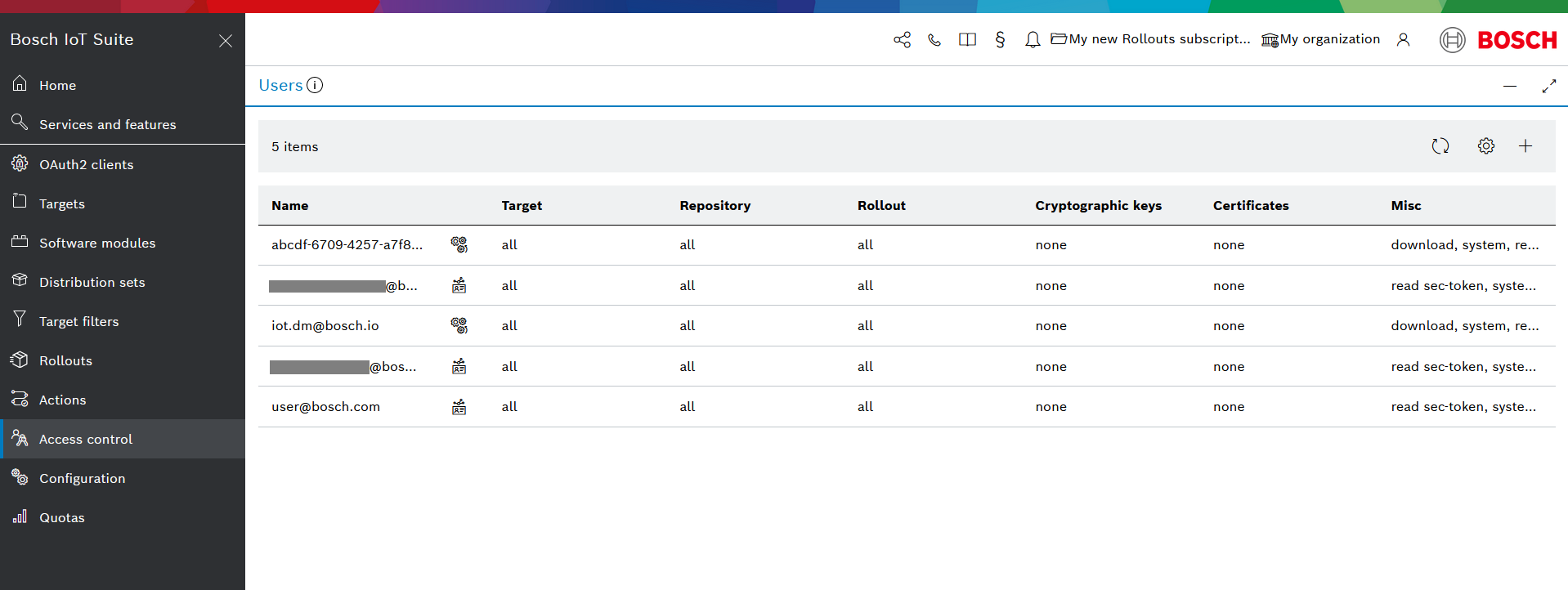 Upon selecting Access control from the main navigation you will enter the Users view.
